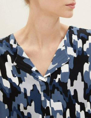 XS S M XL XXLБлуза з глибоким V-подібним вирізом горловини із віскози з принтом. Рукава три чверті з еластичними манжетами, застібається на ґудзики спереду