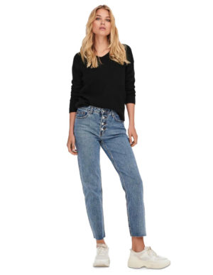 MСветр з круглим вирізом горловини із суміші віскози в рубчик, довгі рукава декоровані ґудзиками