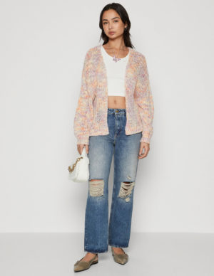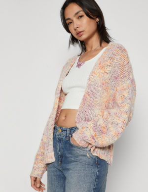 MРізнокольоровий, в’язаний кардиган без застібки із м’якої пряжі, спущена лінія плечового шва