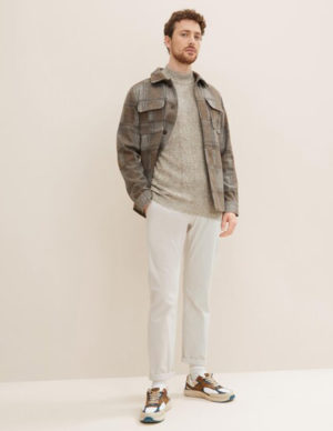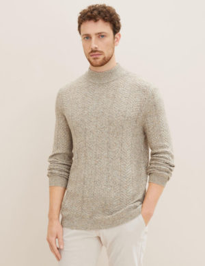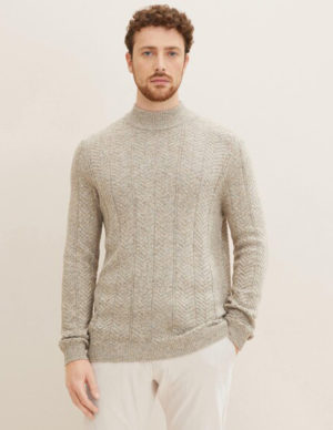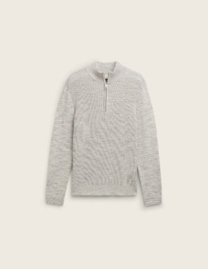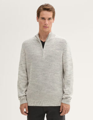 SСветр із пряжі суміші бавовни, поліаміду та вовни. Високий комір із застібкою на блискавку спереду