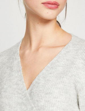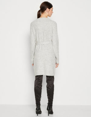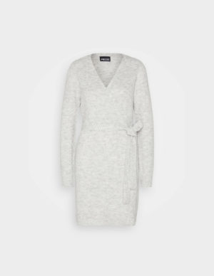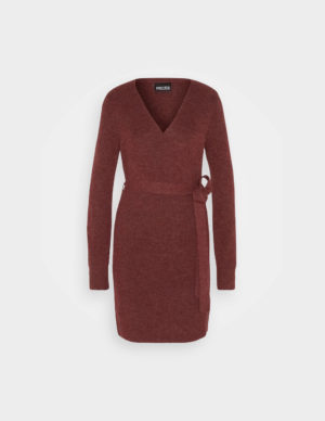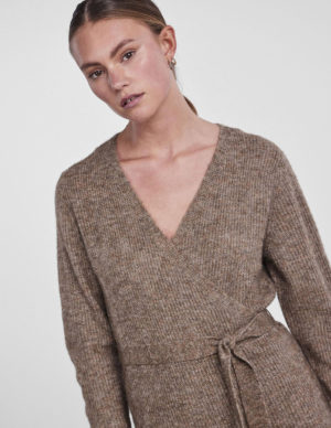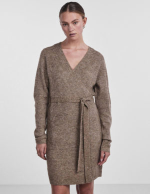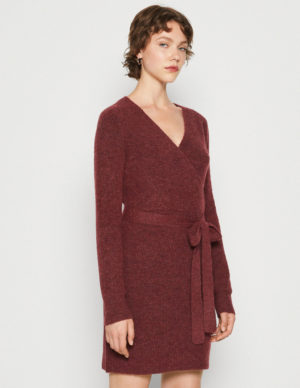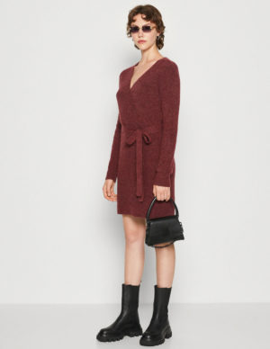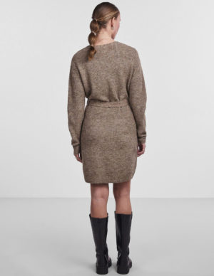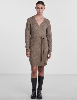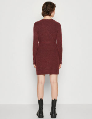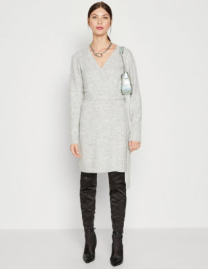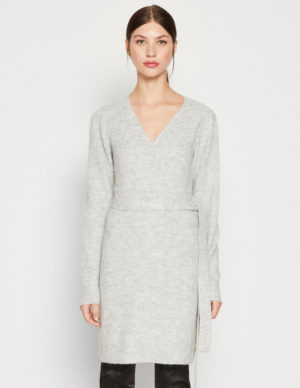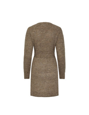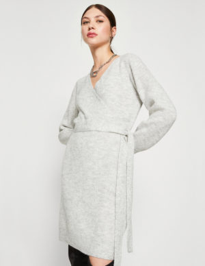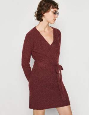 MВ’язана сукня довжиною до коліна з V-подібним вирізом горловини із м’якої пряжі, пояс із тієї ж тканини на талії