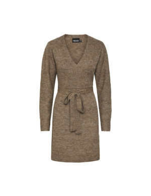 XXSВ’язана сукня довжиною до коліна з V-подібним вирізом горловини із м’якої пряжі, пояс із тієї ж тканини на талії