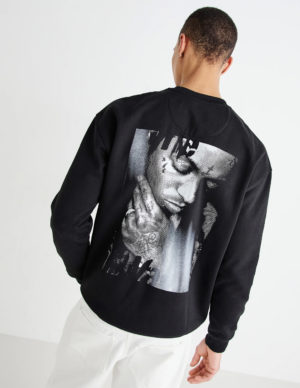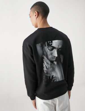 LСвітшот з круглим вирізом горловини із суміші бавовни з принтом спереду та ззаду. Спущена лінія плечового шва та окантовка в рубчик по краях