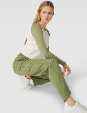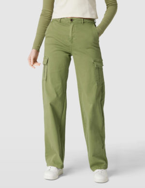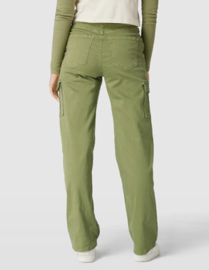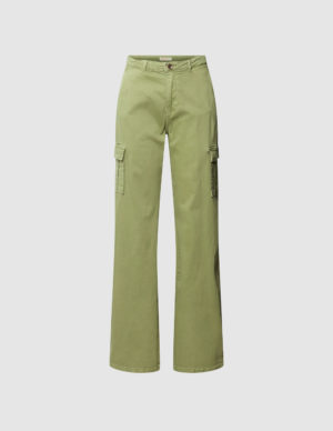 SБрюки-карго прямого крою із бавовняної тканини. Спереду прорізні кишені та великі накладні кишені з обох боків, ззаду дві накладні. Застібається на блискавку та ґудзик