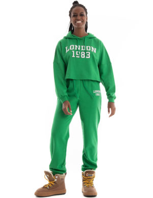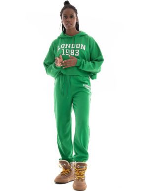 SСпортивні штани із суміші бавовни з принтом. Регульований пояс зі шнурком та еластичні манжети знизу. Спереду дві прорізні кишені та одна накладна ззаду