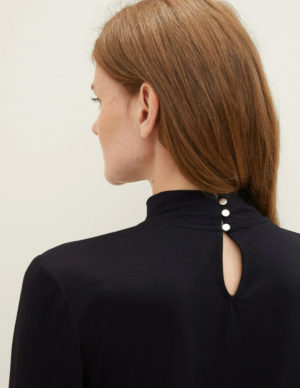 L XLБлуза з коміром стійкою. Довгі рукава з манжетами, ззаду V-подібний виріз на ґудзиках