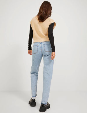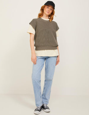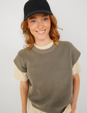 XS S M LВ’язаний жилет з круглим вирізом горловини із бавовняної пряжі, окантовка в рубчик по краях