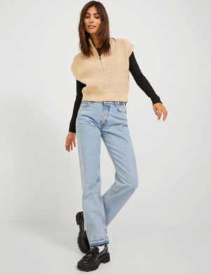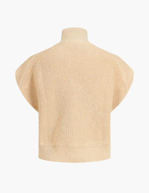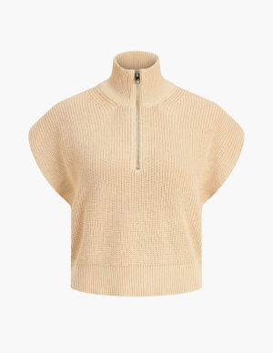 MВ’язаний жилет з коміром стійкою на блискавці із бавовняної пряжі, окантовка в рубчик по краях