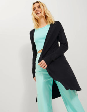 XS S MПодовжений кардиган без застібки. На рукавах невеликі розрізи, окантовка в рубчик по краях
