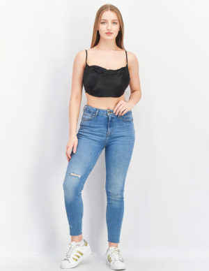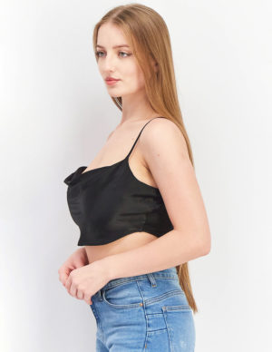 XXS XS S M LУкорочений топ із віскозної тканини з хомутом на тоненьких регульованих бретелях