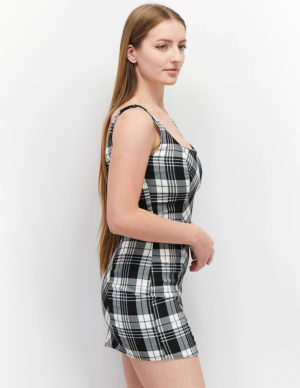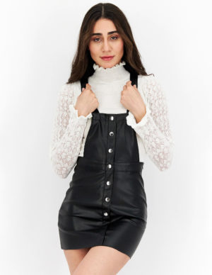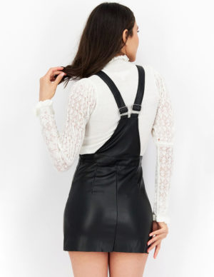 SКороткий сарафан з прямим верхом і регульованими бретелями зі штучної шкіри. Декорован ґудзиками спереду, застібаєтся на приховану блискавку збоку