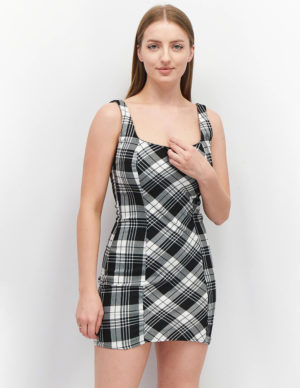 XXSКоротка фактурна сукня з прямокутним вирізом горловини на тонких бретелях із бавовняного трикотажу