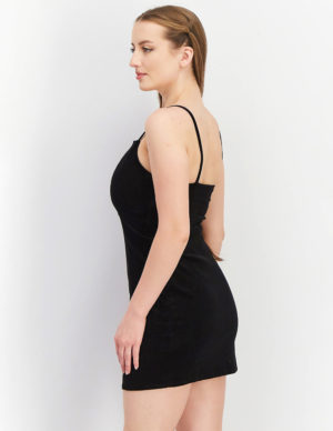 M LКоротка сукня із віскозної тканини з хомутом на тоненьких регульованих бретелях, невеликий розріз з одного боку