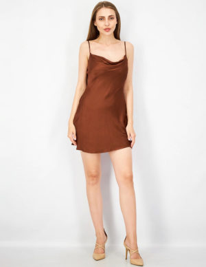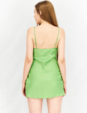 S MКоротка сукня із віскозної тканини з хомутом на тоненьких регульованих бретелях, невеликий розріз з одного боку