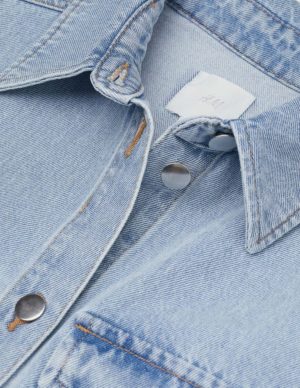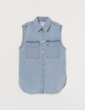 S MЖилет без рукавів із бавовняного деніму. Комір з куточками, застібається на гудзики. Дві нагрудні кишені з клапаном, ззаду кокетка