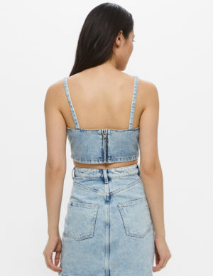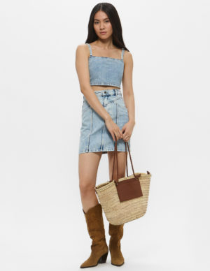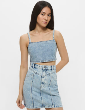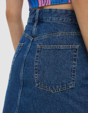 XS S M L XLСпідниця із бавовняного деніму. Спереду застібаються на блискавку та ґудзик