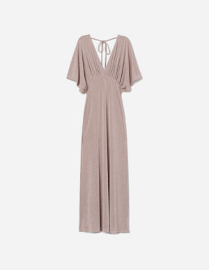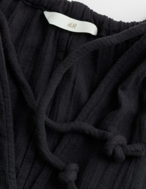 S MКоротка сукня з м’якої фактурної тканини з бавовни та льону. Виріз горловини з куліскою і V-образним вирізом зверху, і навіть об’ємні рукави реглан довжиною 3/4 з вузькими манжетами. Без підкладки.