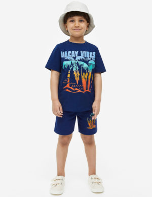 110/116 122/128Футболка з швидковисихаючої функціональної тканини з принтом спереду та ззаду. Короткі рукави реглан з двошаровим контрастним низом, спинка трохи довша