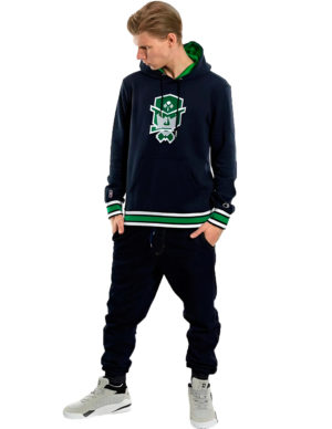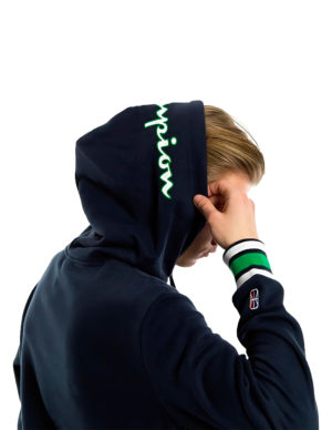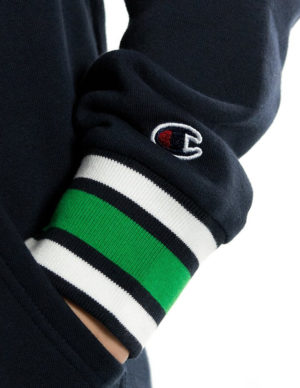 SХуді з регульованим капюшоном та кишенею-кенгуру із суміші бавовни з логотипом Champion та принтом. Окантовка в рубчик по краях, контрасні смужки