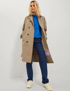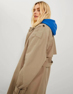 S M XL XXLПлащ із суміші бавовни має прямокутні лацкани, довгі рукава з пряжкою для регулювання, ремінь із тієї ж тканини на поясі. Спущена лінія плечового шва, застібається на ґудзики спереду. Дві бічні кишені, розріз ззаду