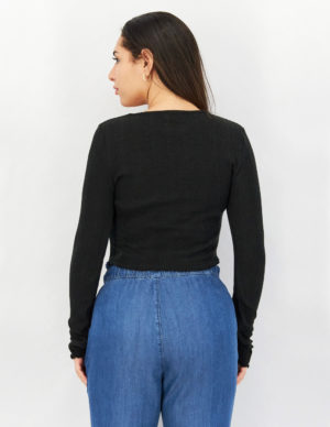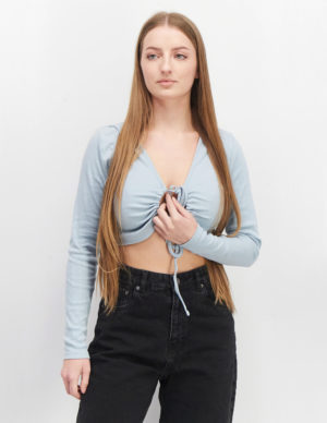 LУкорочений лонгслів з довгим рукавом, крулий виріз горловини. З обох боків регульоване драпірування
