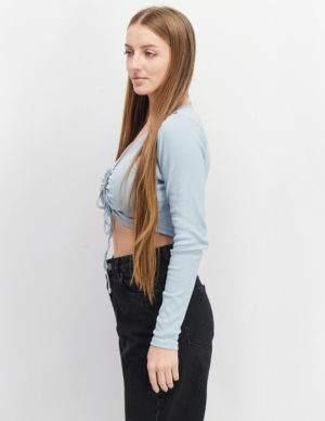 XXS XS S M LУкорочений лонгслів з вирізами по боках на зав’язках спереду. Із бавовняного трикотажу з довгими рукавами в рубчик, V-подібний виріз горловини