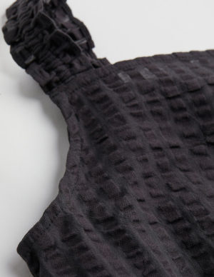 158 смБлуза на еластичних бретелях, оброблених рюшами із повітряного трикотажу. Еластичний низ з коротким воланом внизу