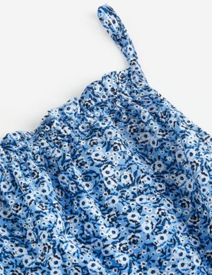 134 см 140 см 146 см 152 см 158 см 164 см 170 смБлуза вільного крою на тонких бретелях в квітковий принт. Прямокутний виріз горловини з еластичним краєм і невеликим воланом. Еластичний пояс і розкльошена баска