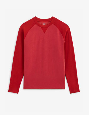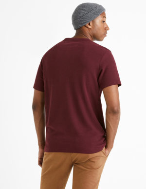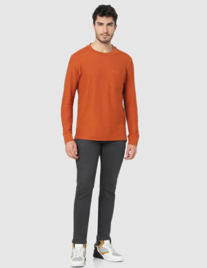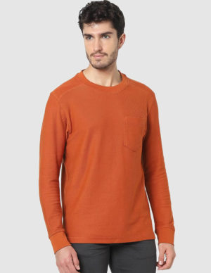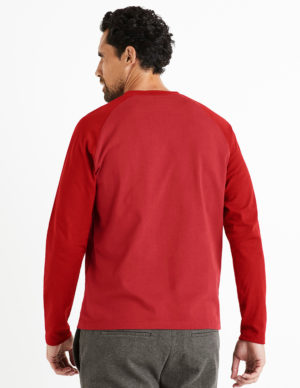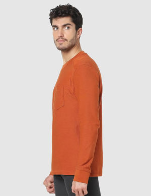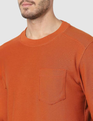 SЛонгслів із фактурної бавовняної тканини. Круглий виріз горловини, нагрудна кишеня, знизу невеликі розрізи