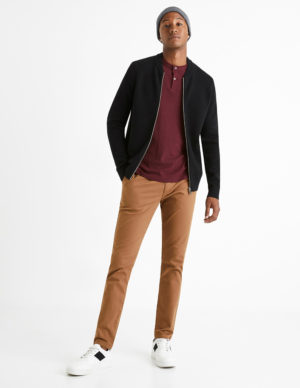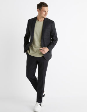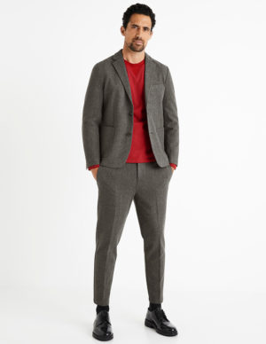 MТканинні брюки зі складками. Похилі бічні кишені та прорізні задні кишені на ґудзику. Застібається на блискавку та ґудзик