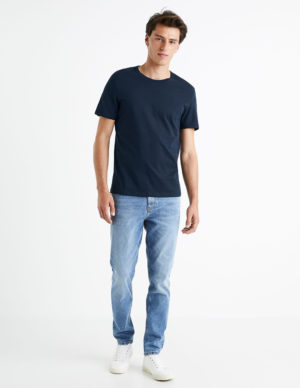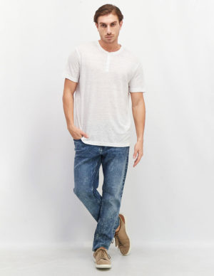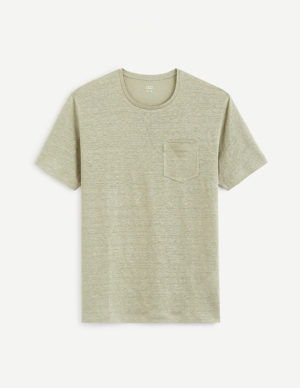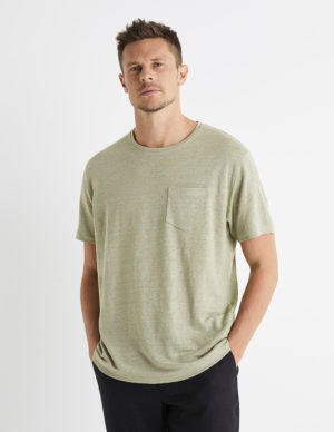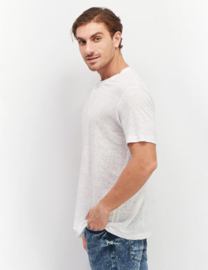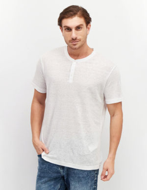LФутболка з повітряного льону з круглим вирізом горловини на ґудзиках у верхній частині