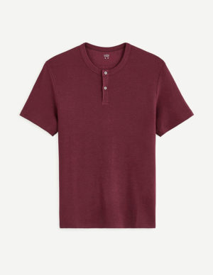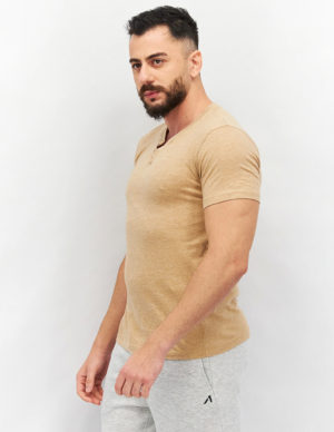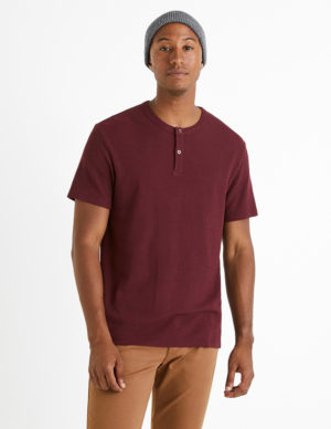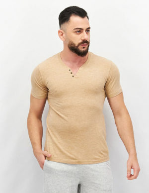 LФутболка зі змішаного бавовняного трикотажу з круглим вирізом горловини на ґудзиках у верхній частині