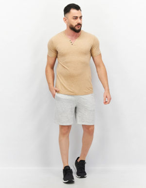 MШорти з бавовняної тканини. Еластична талія зі шнурком, декоративна застібка. Прорізні бічні кишені та задні на липучках