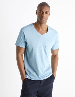 XS SФутболка з бавовняного трикотажу з V-подібним вирізом горловини. Одна нагрудна кишеня