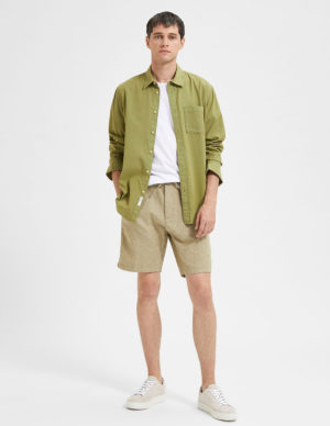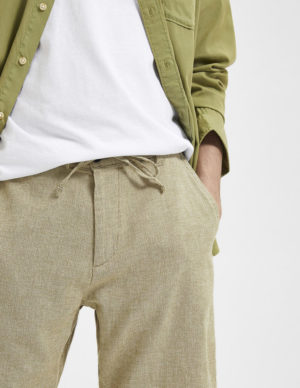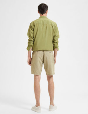 XSШорти із суміши органічної бавовни та льону, регульований шнурок на поясі. Прорізні бічні кишені та задні на ґудзиках. Застібається на блискавку та ґудзик