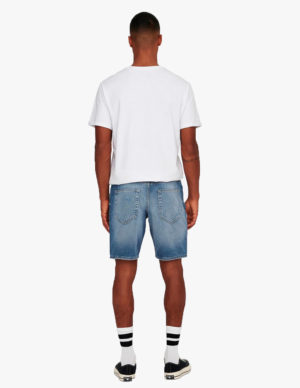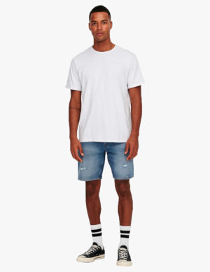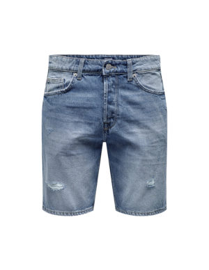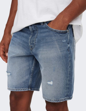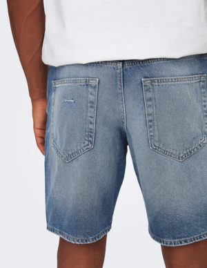 SШорти з п’ятьма кишенями із бавовняного деніму з потертими деталями, застібка на блискавку та ґудзик