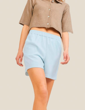 SУкорочена сорочка оверсайз з короткими рукавами в смужку із органічної бавовни. Класичний комір з куточками, одна нагрудна кишеня. Застібається спереду на ґудзики