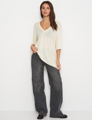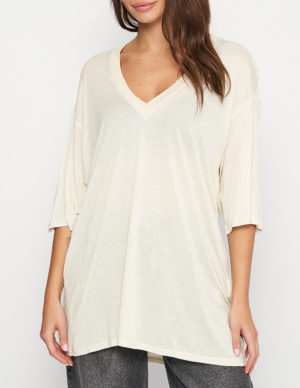XS S M LДовга футболка з V-подібним вирізом горловини з м’якої віскозної тканини. Спущена лінія плечового шва