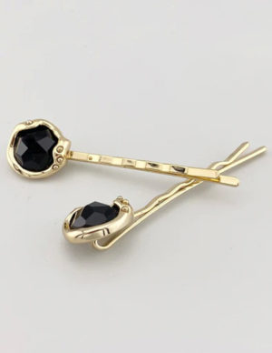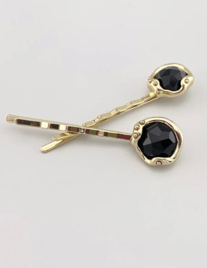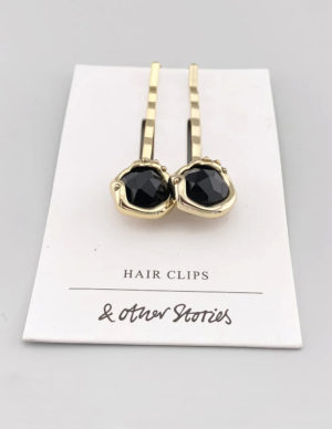 Набір з двох заколок золотого кольору з чорним круглим кристалом від шведського бренду & other stories. Довжина 6 см. Розмір декору діаметр 1,6 см
