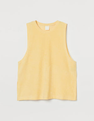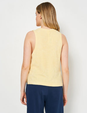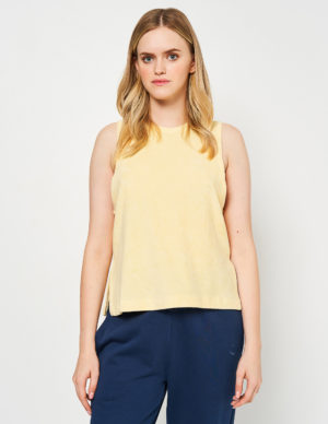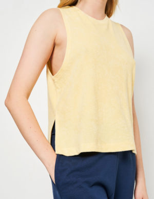 S LВільна майка без рукавів з м’якого матеріалу. Круглий виріз горловини, глибокі вирізи на плечах, довгі розрізи з боків
