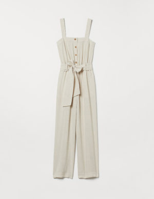 XXLКомбінезон з прямими широкими штанинами до щиколотки із суміші віскози та льону. Широкі бретелі, зверху гудзики. Шов на резинці з поясом на талії. Кишені в бічних швах