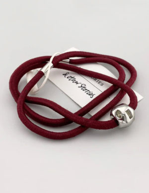 Набір з трьох гумок для волосся бордового кольору з металевим декором, одна гумка прикрашена кристалами різної форми від шведського бренду & other stories. Розмір декору довжина 1см, ширина 1,1см