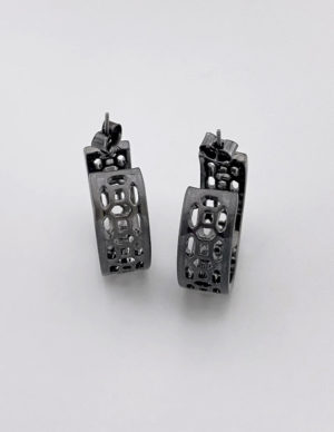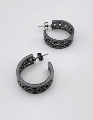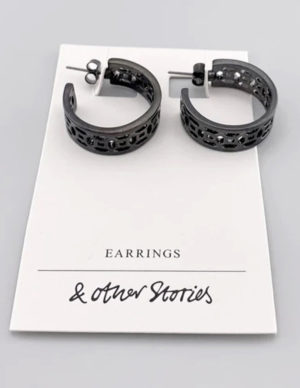 Сережки півкола з геометричним малюнком блискучого темно-сірого кольору від шведського бренду & other stories. Діаметр 2,5см. Ширина 0,9см
