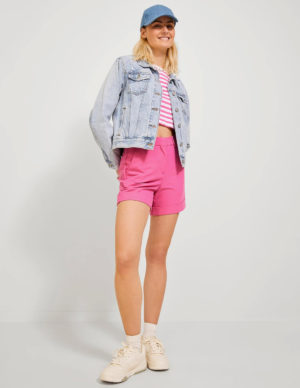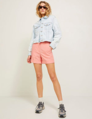 SШорти з п’ятьма кишенями із бавовняного деніму. Застібається на блискавку та ґудзик, необроблені края