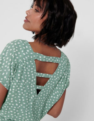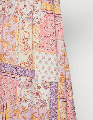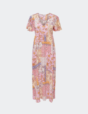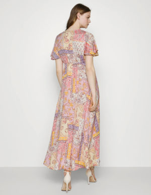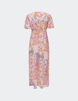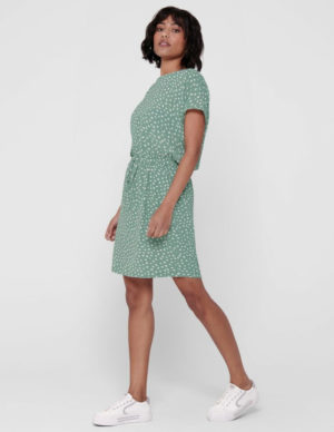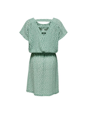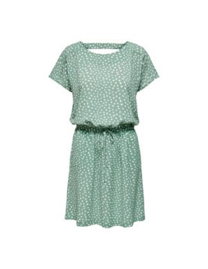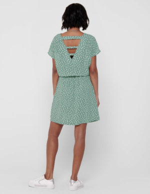 XSСукня з принтом, коротким рукавом. Круглий виріз горловини, регульований шнурок на талії. V-подібний виріз ззаду
