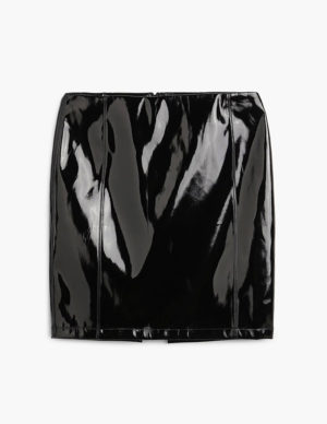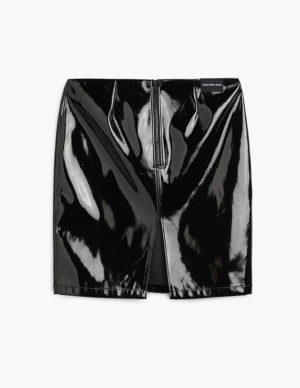 S M LСпідниця прямого крою з блискучої штучної шкіри, занижена посадка. Застібається на блискавку ззаду, розріз по центру ззаду. Гумовий значок Calvin Klein позаду талії