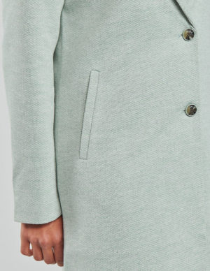 XSПальто прямого крою з прямокутними лацканами та довгими рукавами. Застібається на ґудзики спереду, дві прорізні кишені