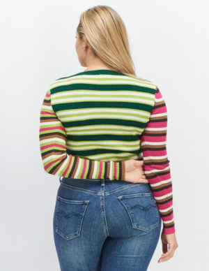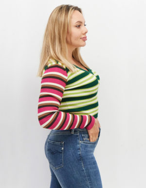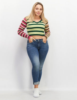 XXS LРізнокольоровий укорочений светр в смужку, із м’якої віскозної тканини, V-подібним вирізом горловини