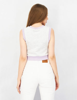 XXS XS S M LУкорочений жилет з написом, V-подібний виріз горловини, окантовка в рубчик по краях