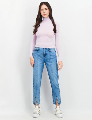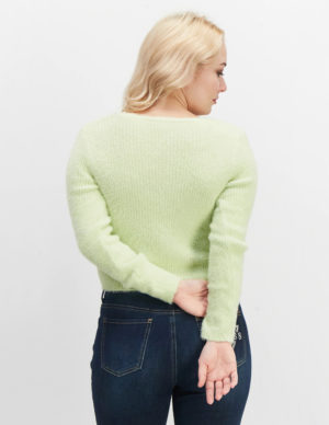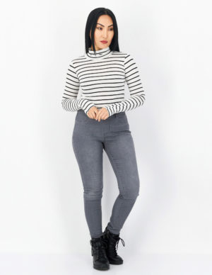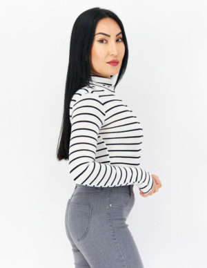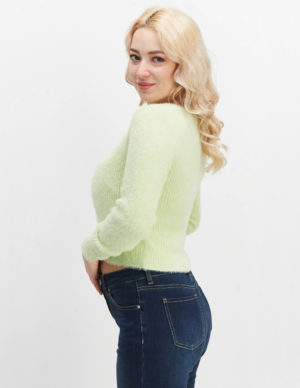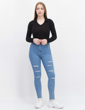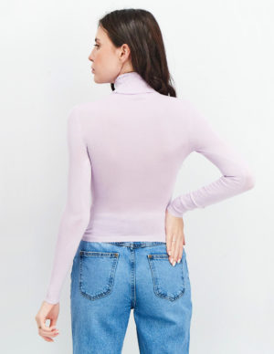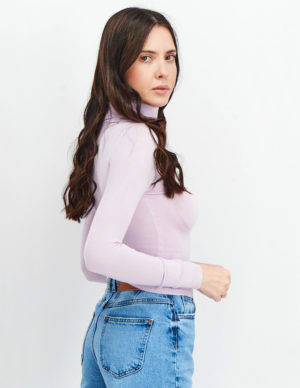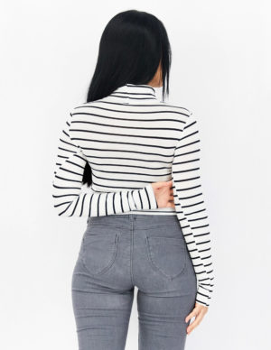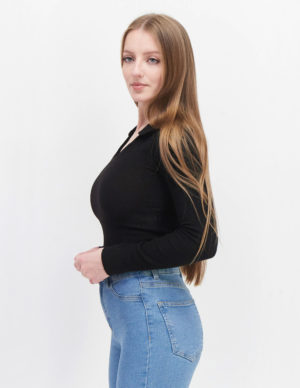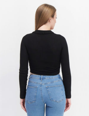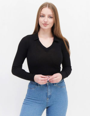SУкорочений лонгслів з V-подібним вирізом горловини. Комір з куточками із м’якого трикотажу з довгими рукавами в рубчик